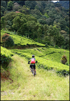 Trip dimulai lebih kurang pukul 8:00 WIB melalui jalan masuk dari samping warung Mang Ade, dengan jalan setapak berumput, dan sebagian besar adalah turunan single track di kebun teh, ada yang sebelah kanan nya adalah jurang, track disini sangat teknikal karena banyak lubang, jalanan becek dan makadam dan batu batu lepas yg licin, beberapa teman ada yang harus mencium tanah.